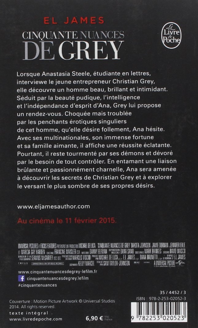 Anastasia Steele accepte de remplacer sa colocataire malade Katherine pour interviewer lhomme daffaires et milliardaire Christian Grey. Cinquante nuances de Grey Litterature Documents French Edition by James E L PB Good.